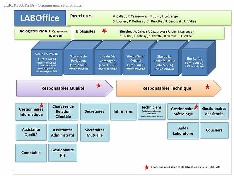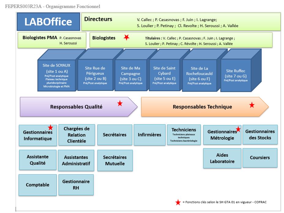 La Direction est composée de 9 biologistes (7 pharmaciens, 2 médecins) avec, par ordre alphabétique :
